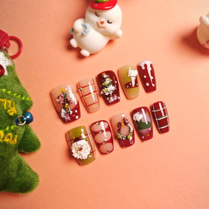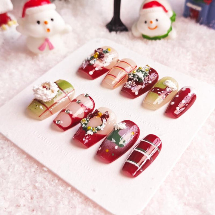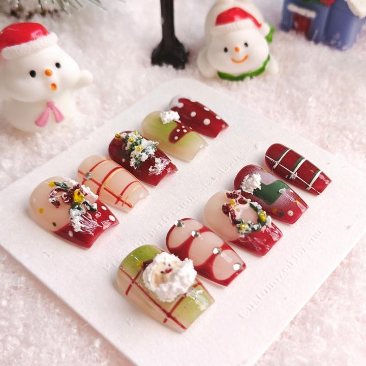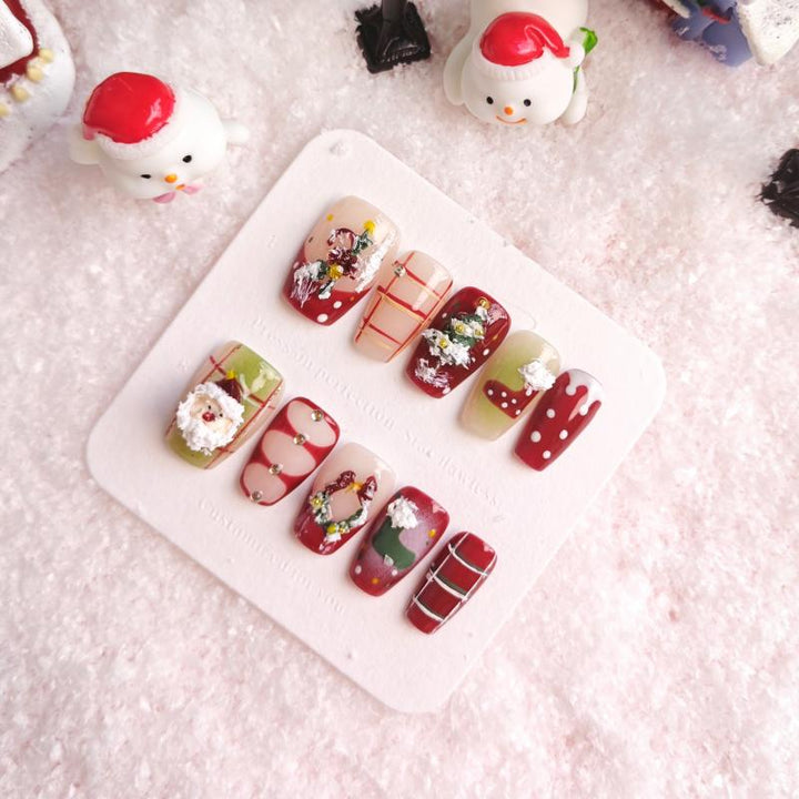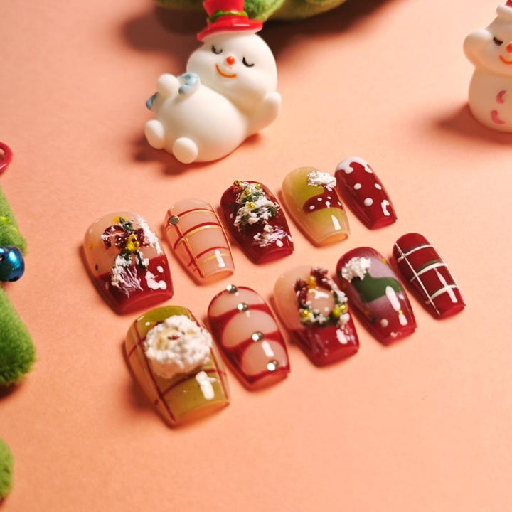 Made from premium materials, they’re durable, comfortable to wear, and insanely easy to apply. Whether you’re hitting a Christmas party, wrapping gifts, or just want to sprinkle some festive charm into your daily style, these nails are your go-to. Each nail boasts a unique holiday design—think Santa faces, mini wreaths, and candy-cane details—that’ll make your hands the star of every holiday gathering.