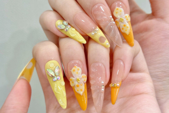 Logistics time does not include handmade time. The hand-made time is about 7-10 Business Days.  If you are urgent, you can Email or contact us on Instagram/TikTok. All sales are final, so please make sure you have the right nail sizes. We are not responsible for any wrong measurements given. Please protect your nails with gloves, etc. if you intend to work with strong chemicals.