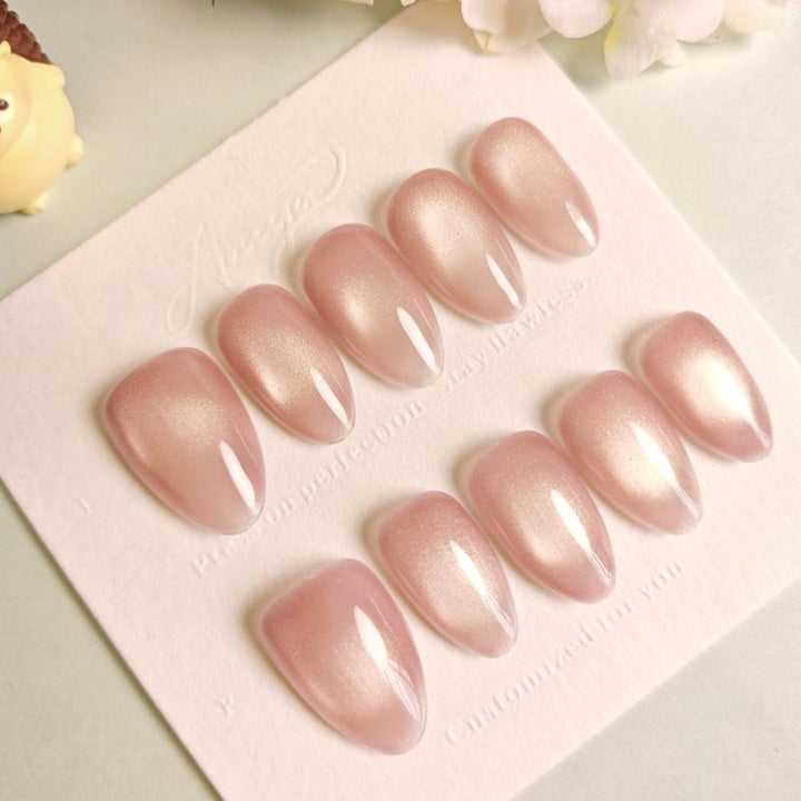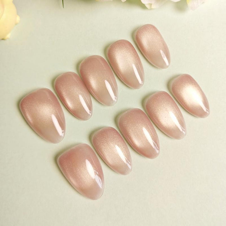 Featuring a soft nude pink hue infused with delicate pearl shimmer for a luminous, polished look, these press-on nails offer a timeless and sophisticated aesthetic. Perfect for daily wear, date nights,...