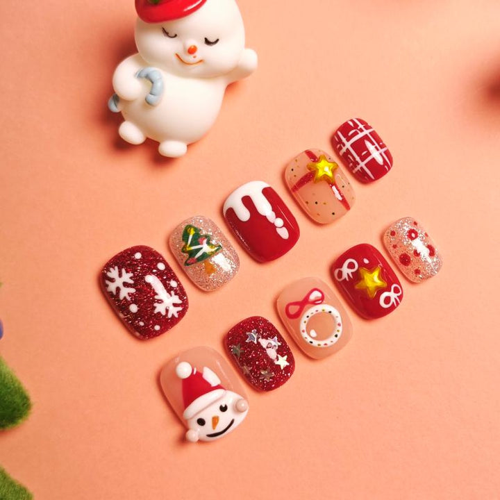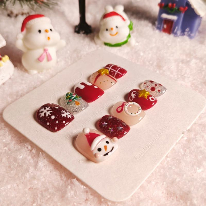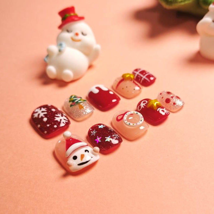Made from top-tier materials, these press-ons are durable, comfortable to wear, and incredibly easy to apply. Whether you’re hosting a Christmas party, exchanging gifts, or just want to infuse your daily look with holiday cheer, they’re the perfect choice. The mix of glossy reds, sparkly glitters, and cute 3D elements ensures your nails will be the center of attention at every festive gathering.